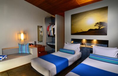 Accommodation options include the beautiful Beachfront Suites – these suites feature a private deck with a lounger, a plunge pool and overlook the Beach Club and ocean. Or the gorgeous Resort Rooms – located in the lush gardens of the property with king or twin beds and full ensuite facilities.